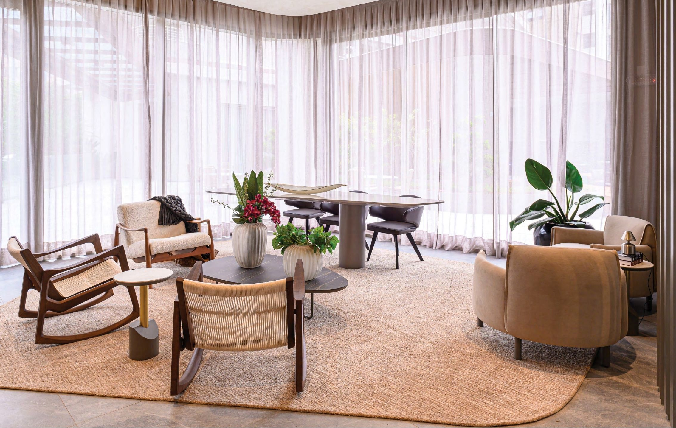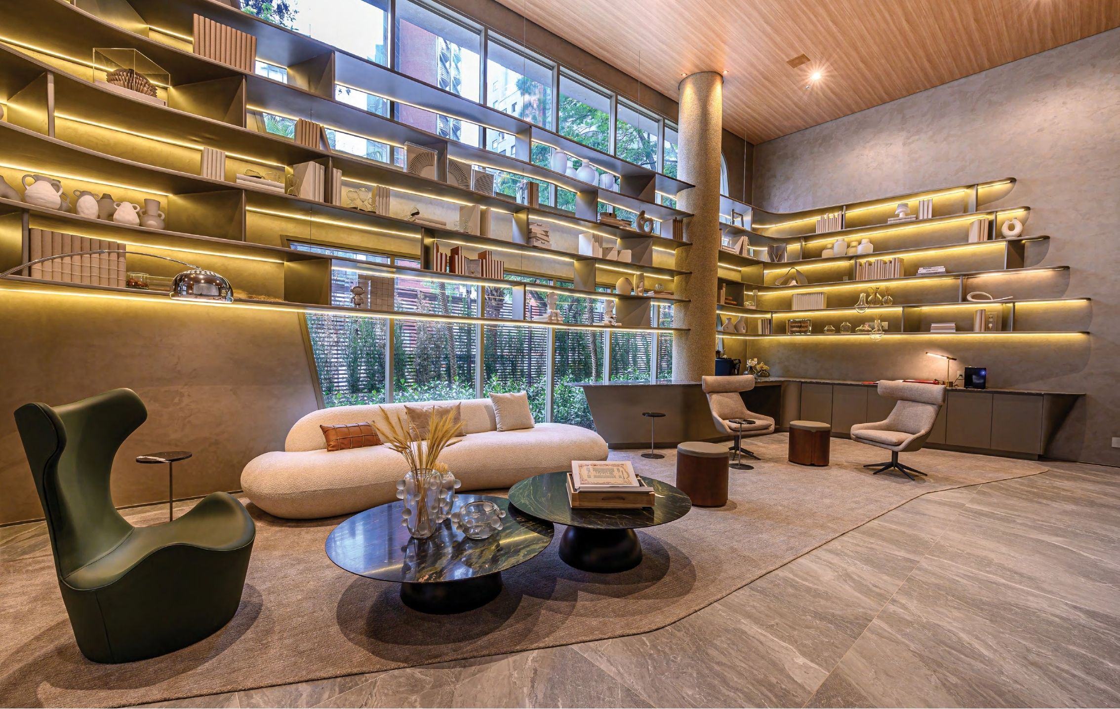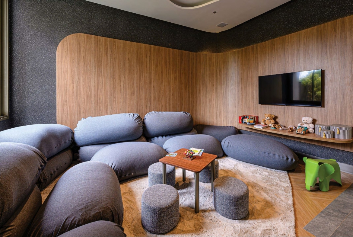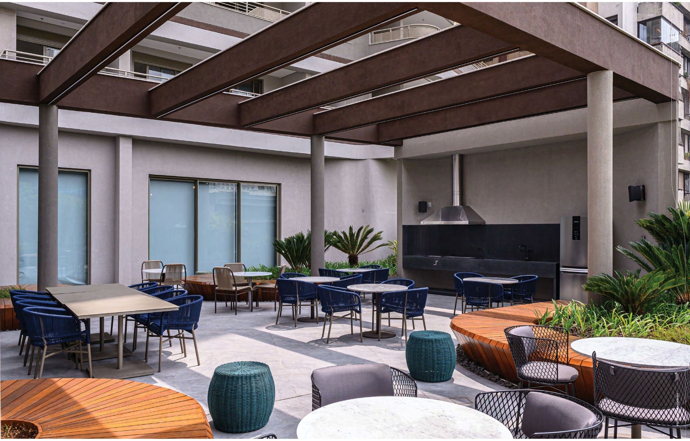 Áreas comuns com paisagismo contemporâneo