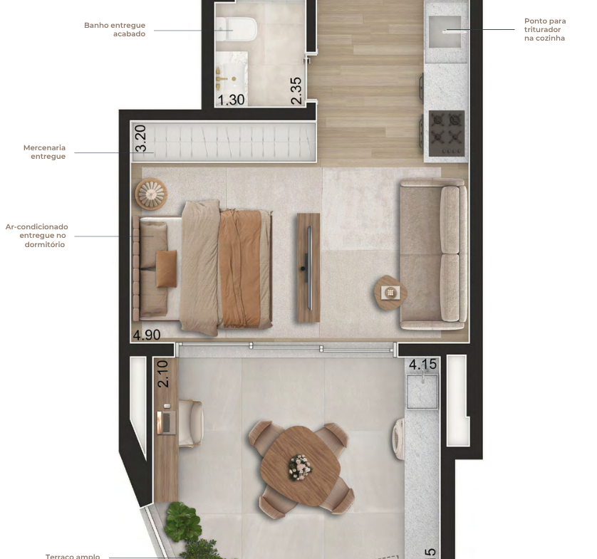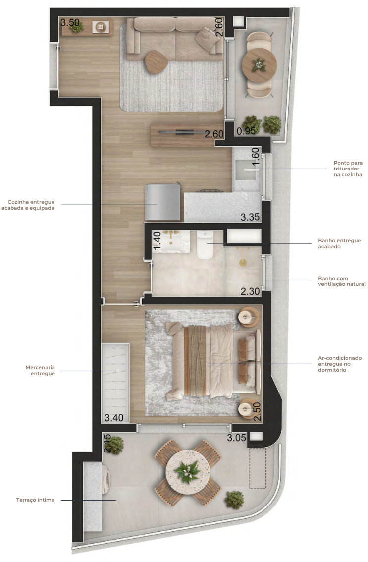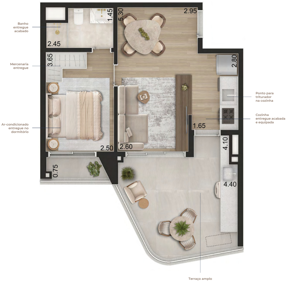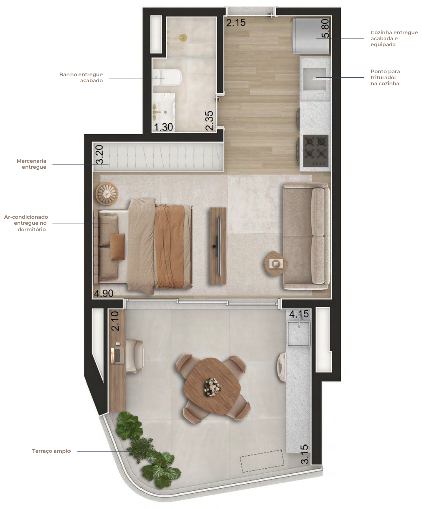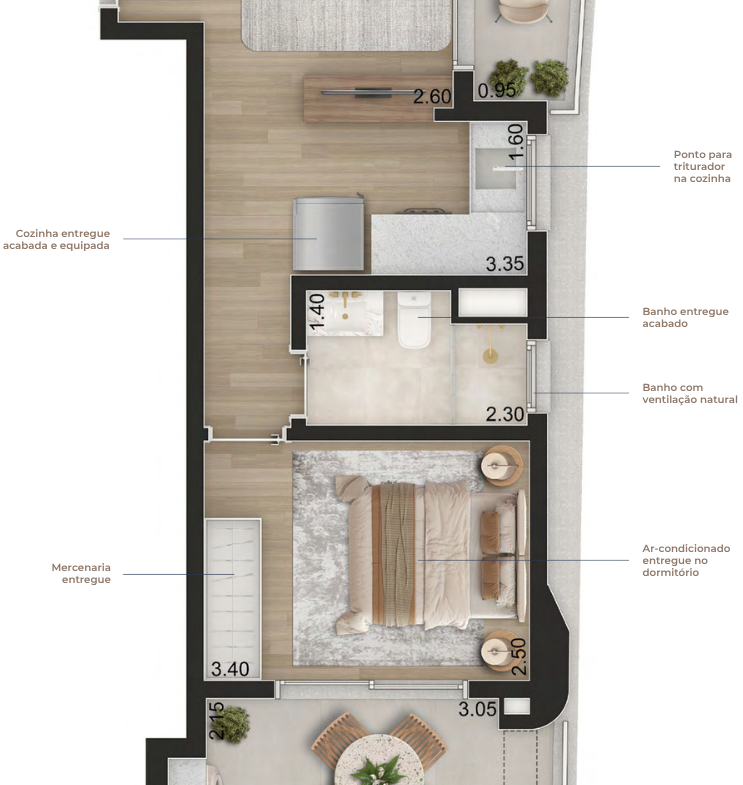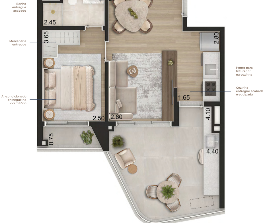 Apartamentos entregues prontos para morar, com marcenaria planejada, eletrodomésticos e ar-condicionado