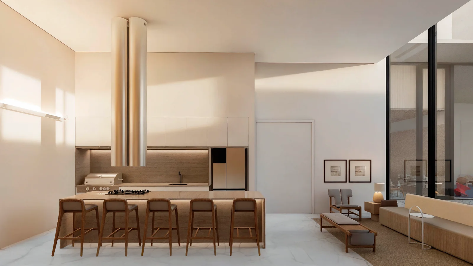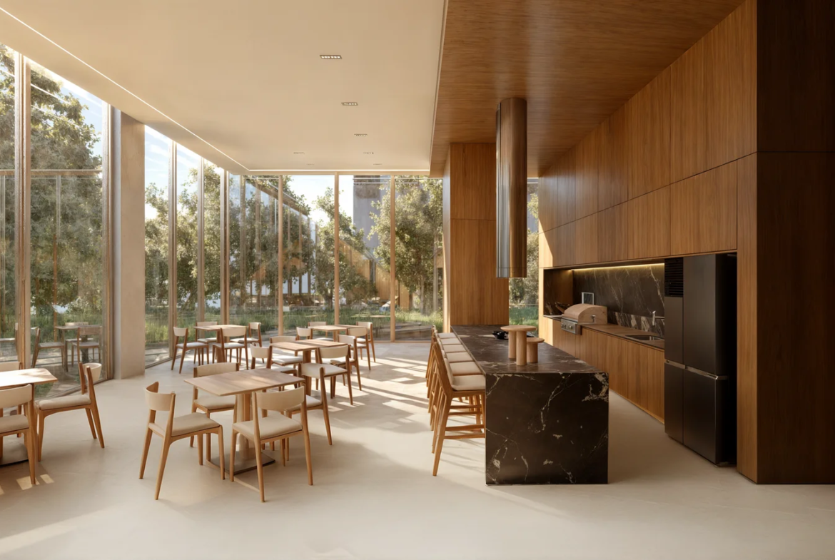 Com tipologias variadas e unidades de médio e grande porte, o empreendimento incorpora elementos de biofilia, tecnologia aplicada às áreas privativas e um pavimento dedicado ao bem-estar, mantendo foco em moradia permanente.