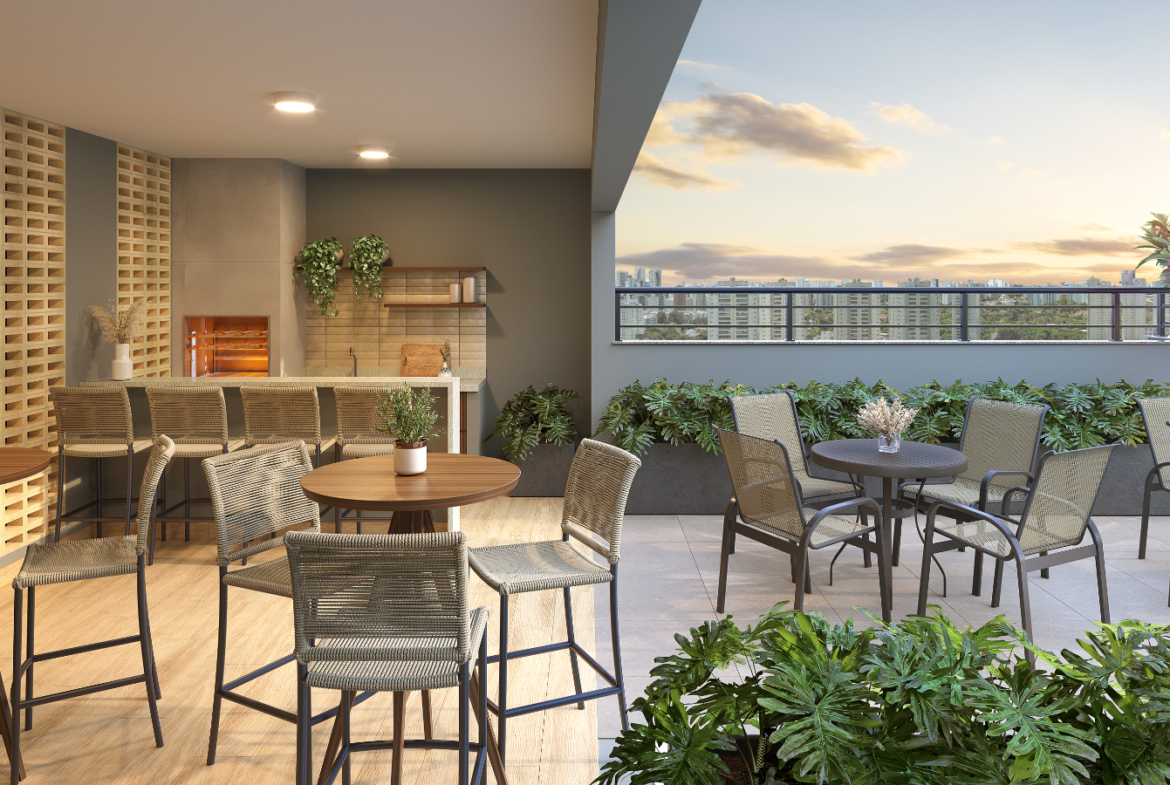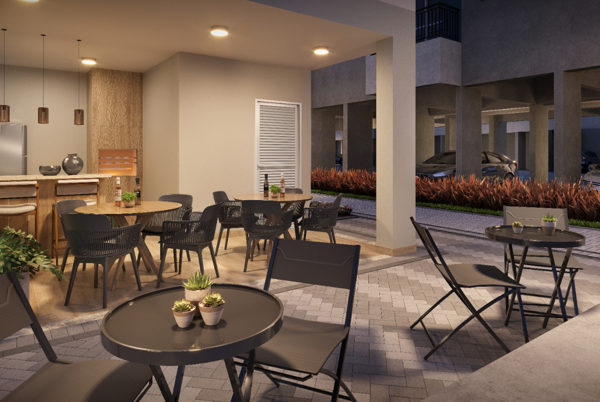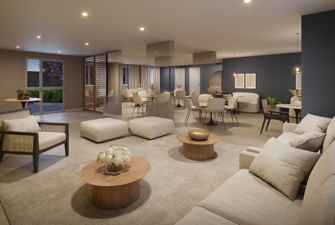 As unidades de 1 e 2 dormitórios foram desenhadas para maximizar conforto e aproveitamento de espaço, com ambientes integrados e opções com terraço. Os apartamentos de 32 m² a 45 m² atendem tanto famílias jovens quanto quem busca primeira moradia com condições acessíveis, com layouts que favorecem ventilação e iluminação natural.