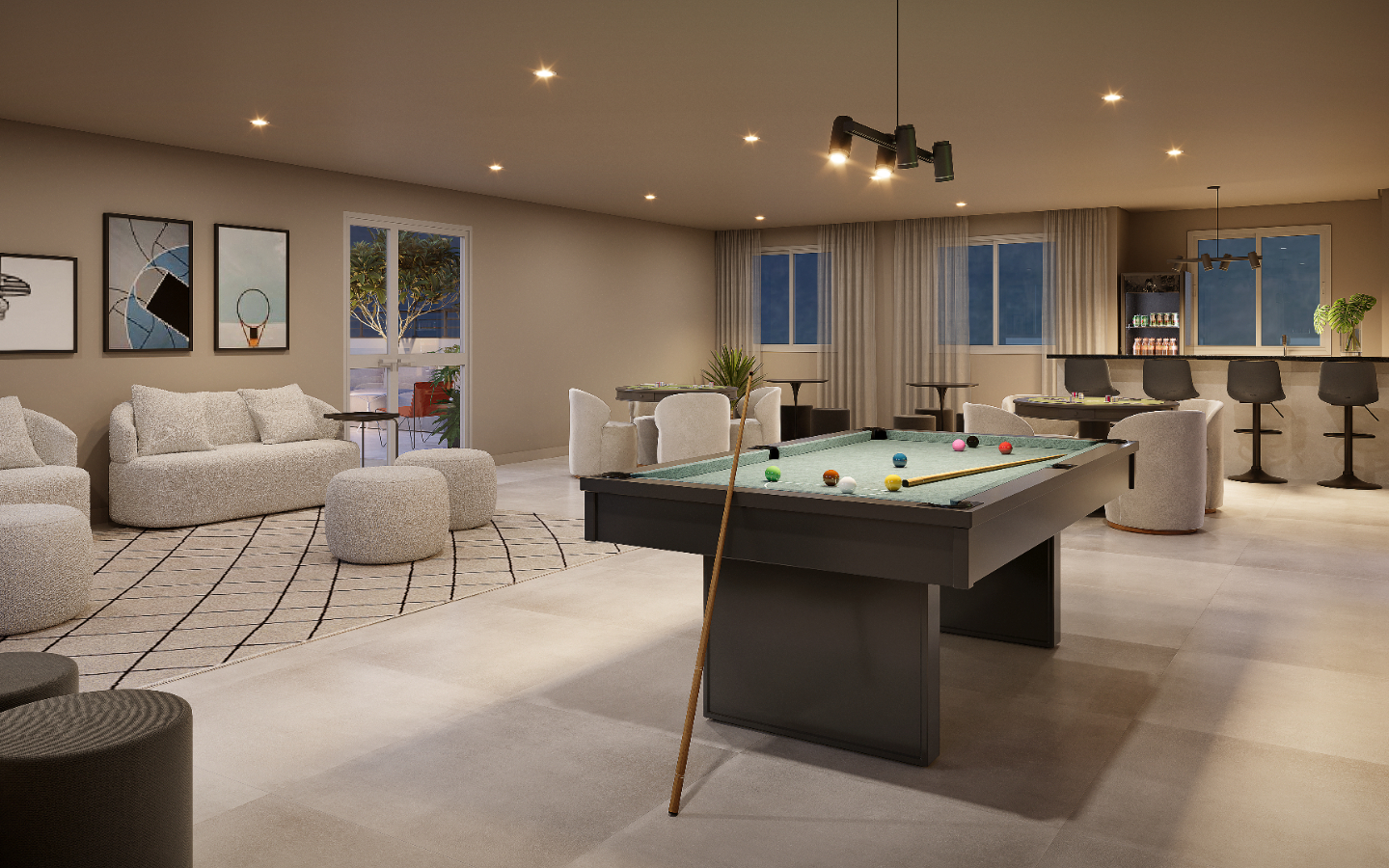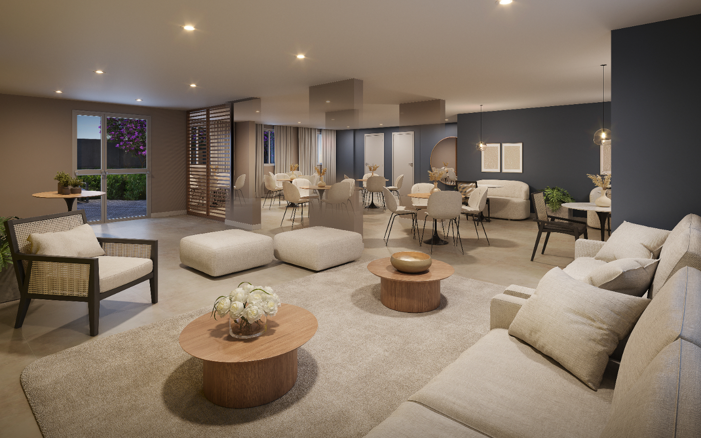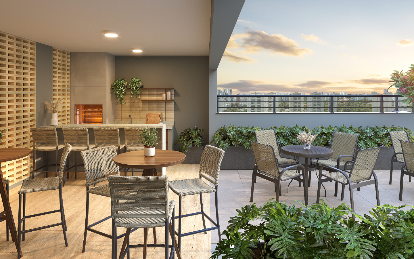 As unidades de 1 e 2 dormitórios foram desenhadas para maximizar conforto e aproveitamento de espaço, com ambientes integrados e opções com terraço. Os apartamentos de 32 m² a 45 m² atendem tanto famílias jovens quanto quem busca primeira moradia com condições acessíveis, com layouts que favorecem ventilação e iluminação natural.