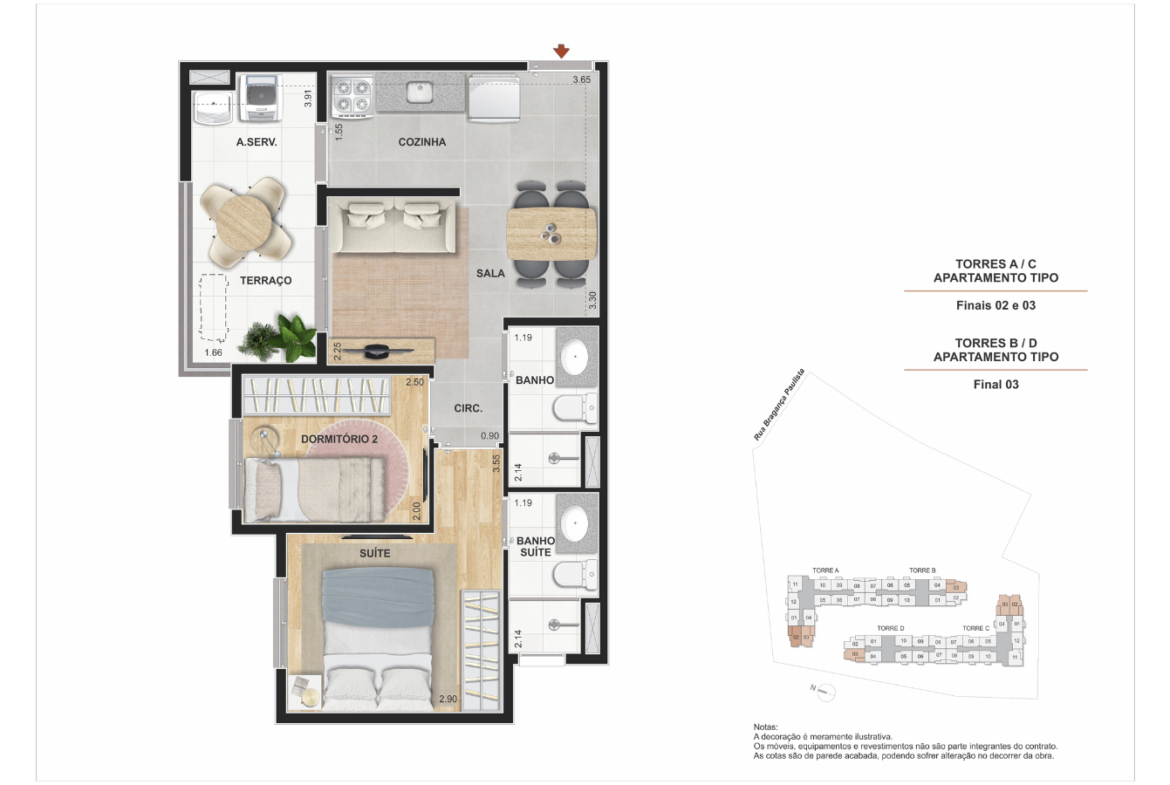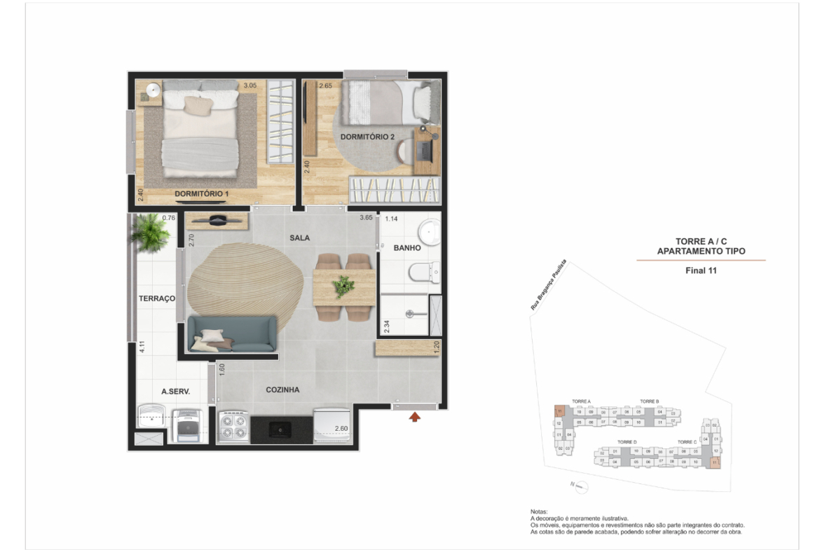Tipologias: Apartamentos de 1 e 2 dormitórios
