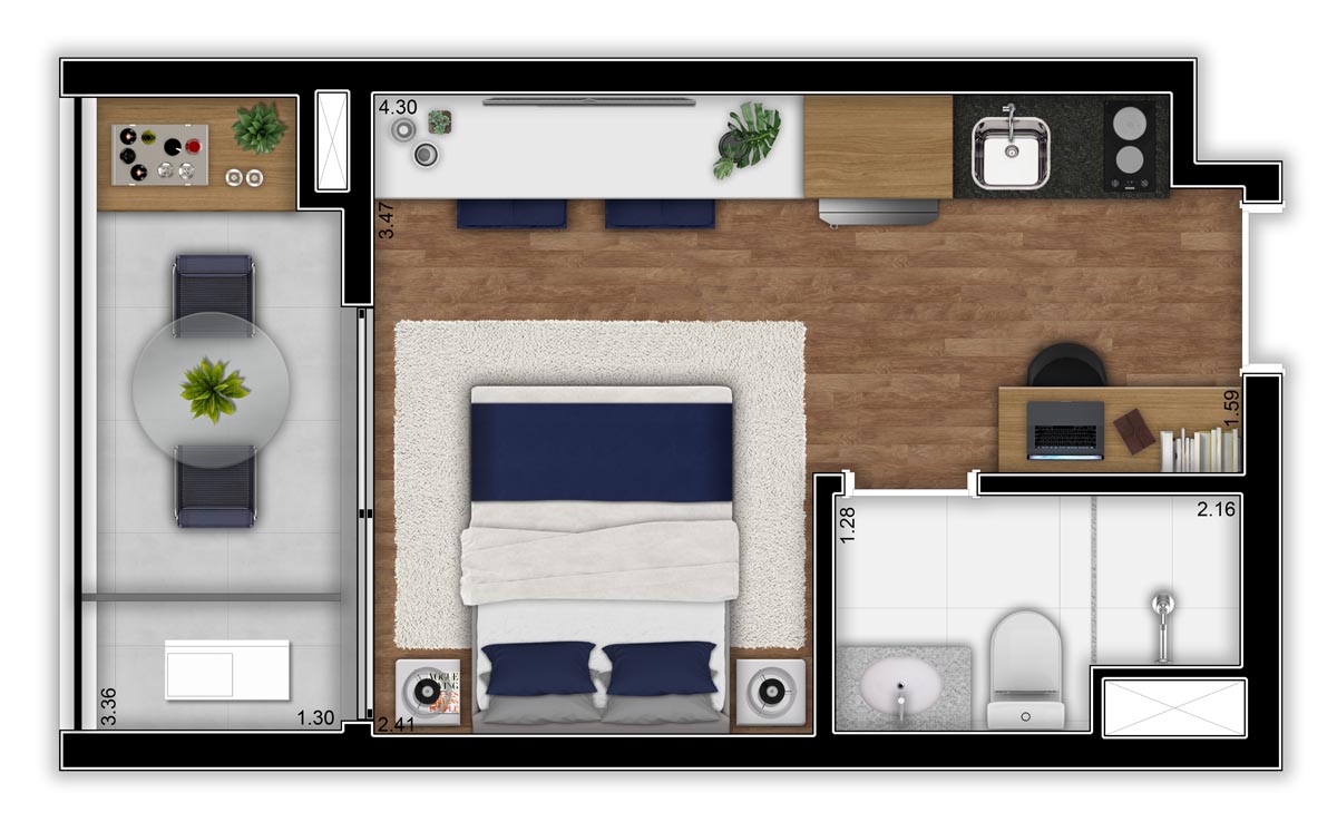 Área Privativa: Residencial – 22m² | 23 m² | 24m² | 29m² | 31m²