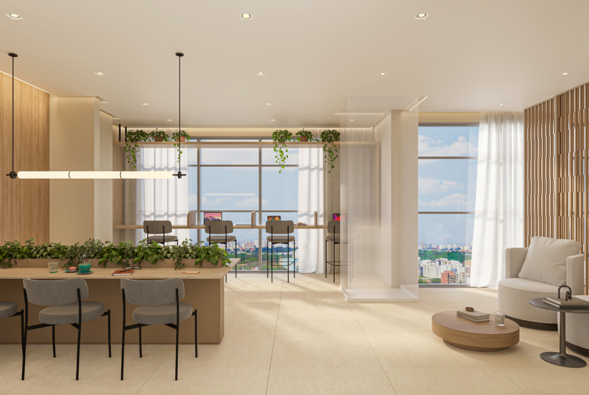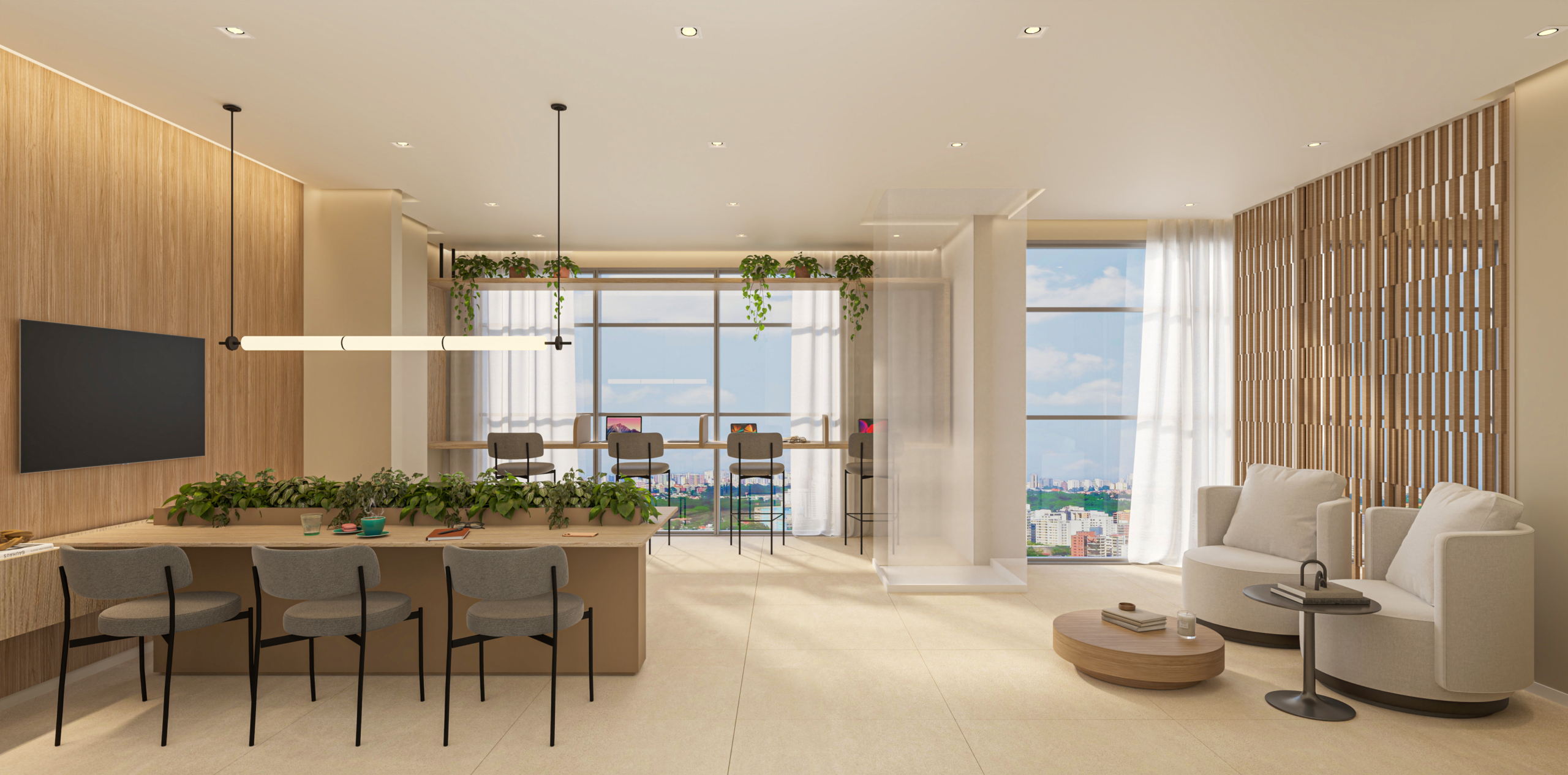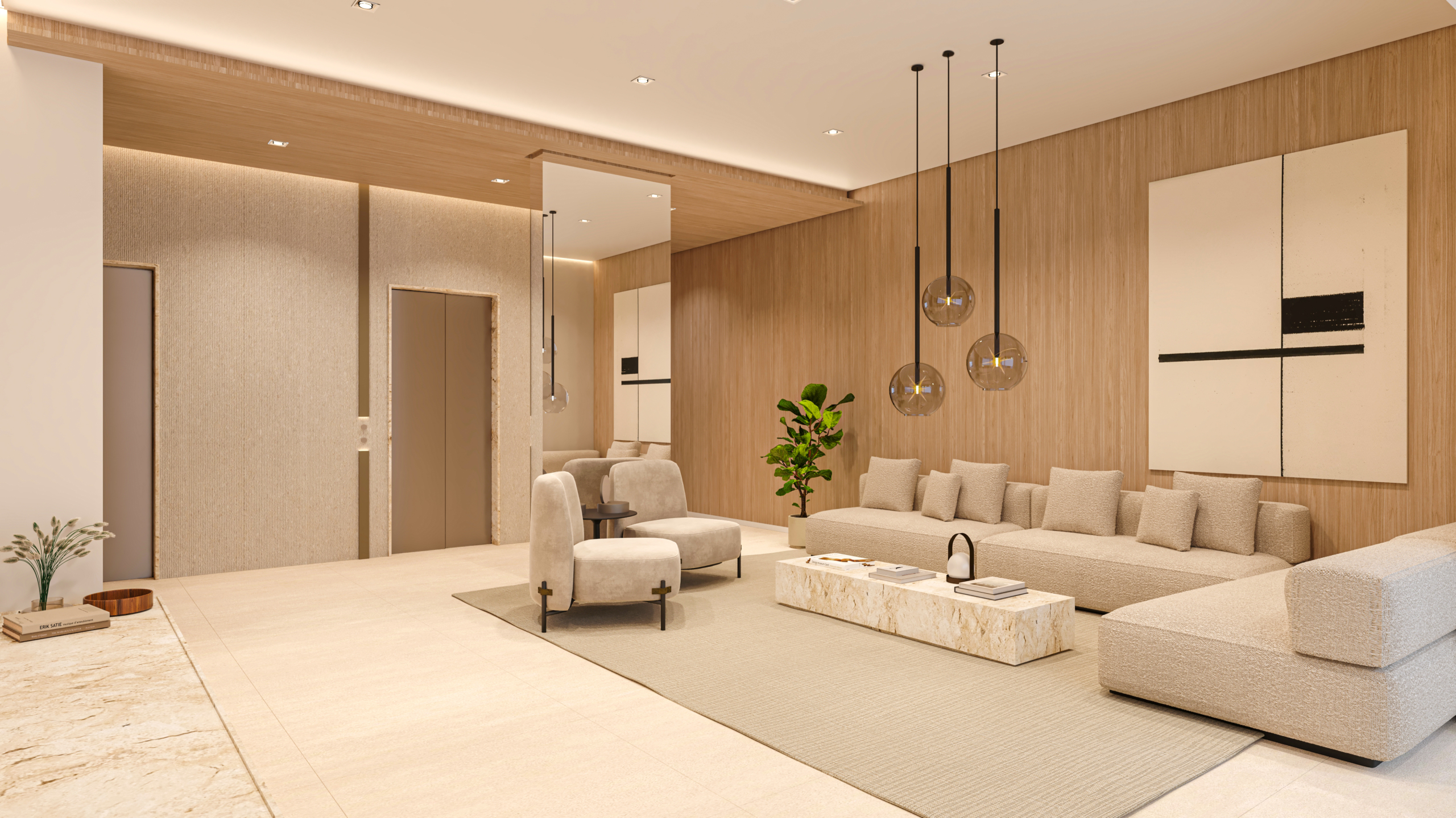 Projeto concebido para integrar funcionalidade, mobilidade urbana e bem-estar, com soluções arquitetônicas e áreas comuns distribuídas de forma eficiente.