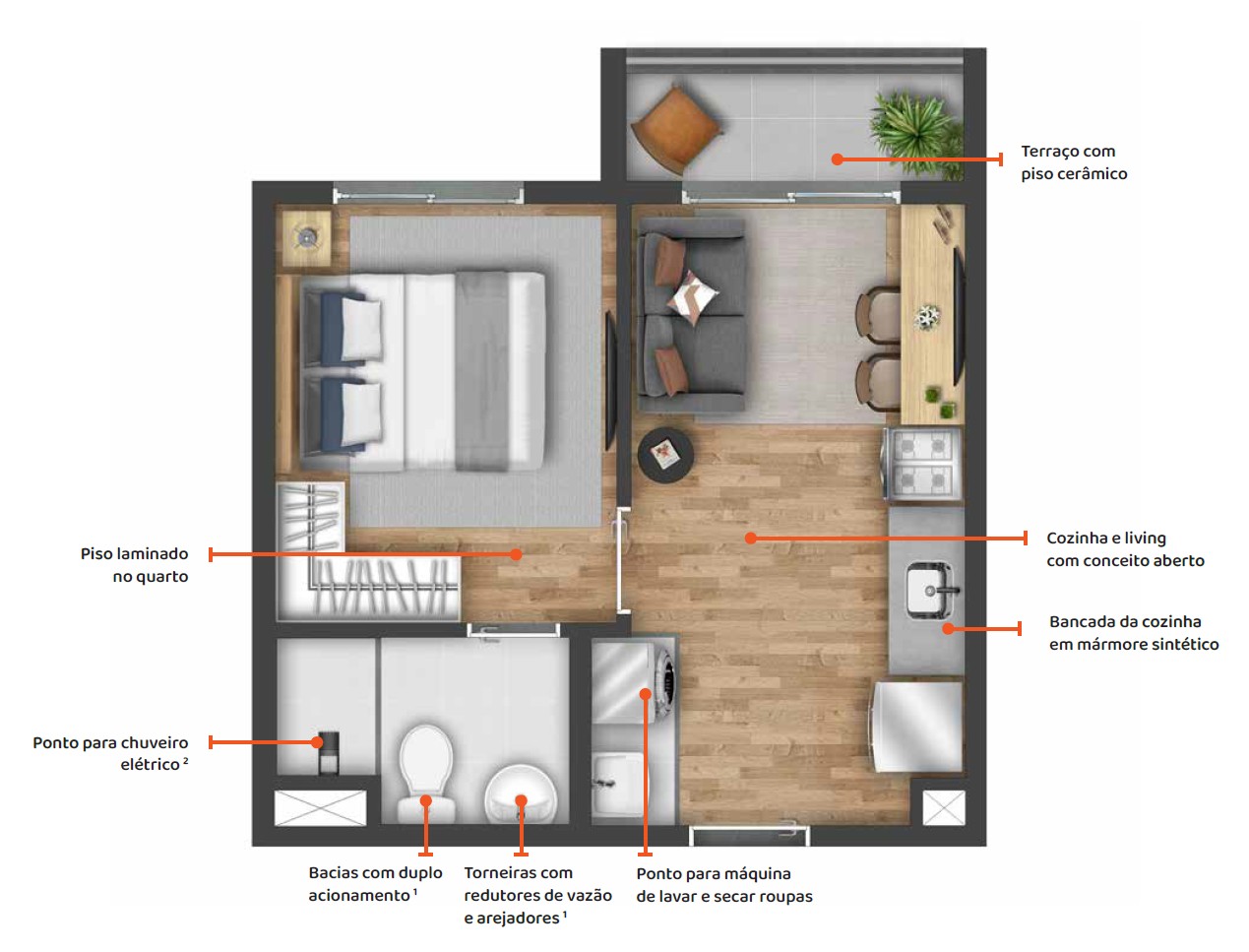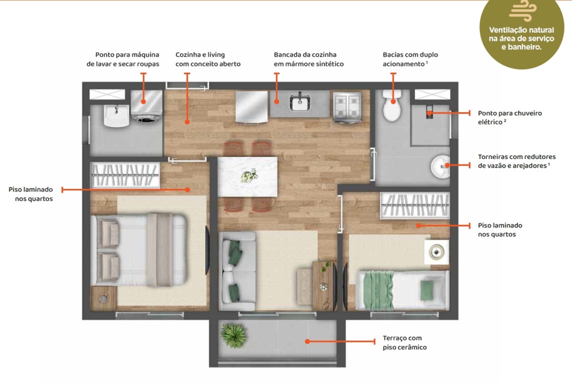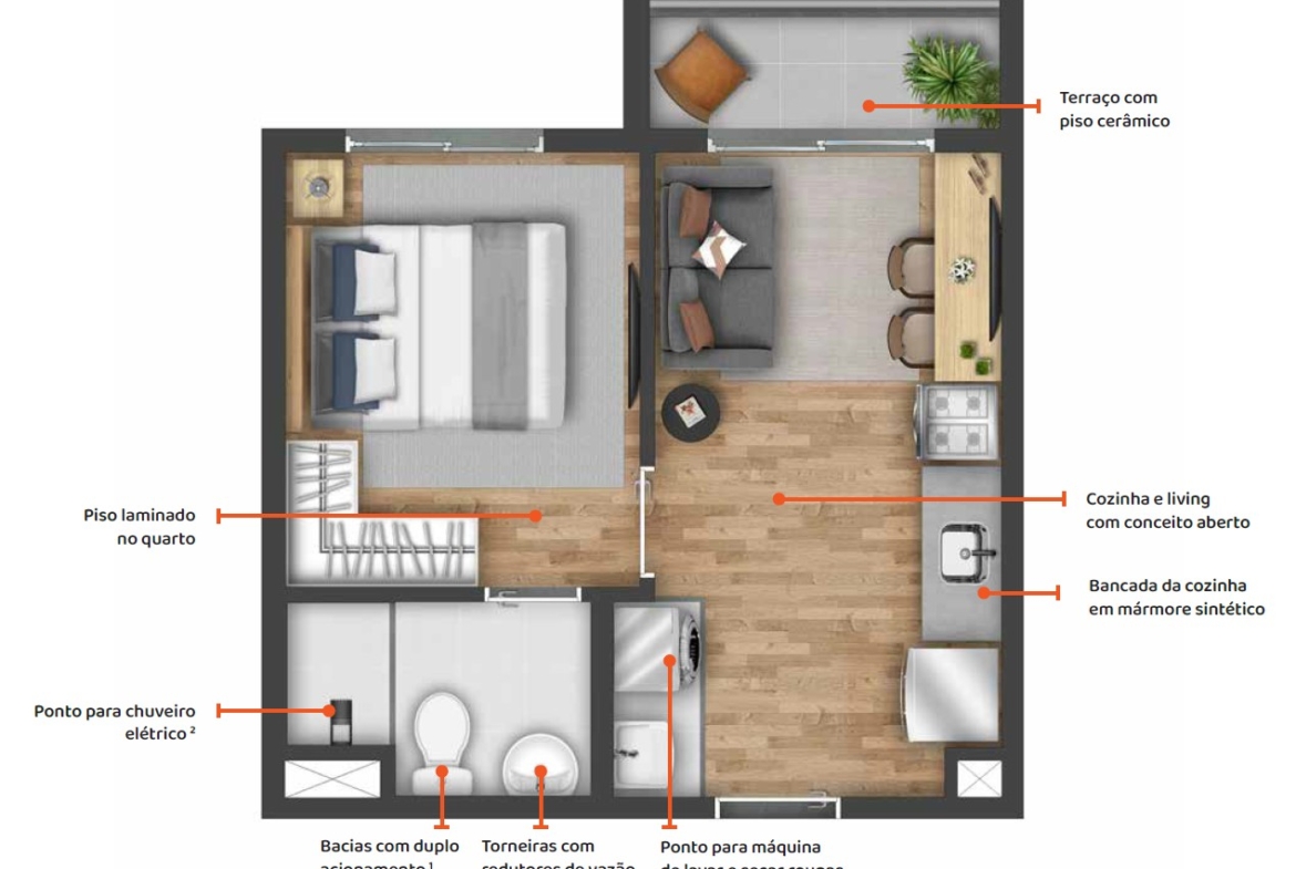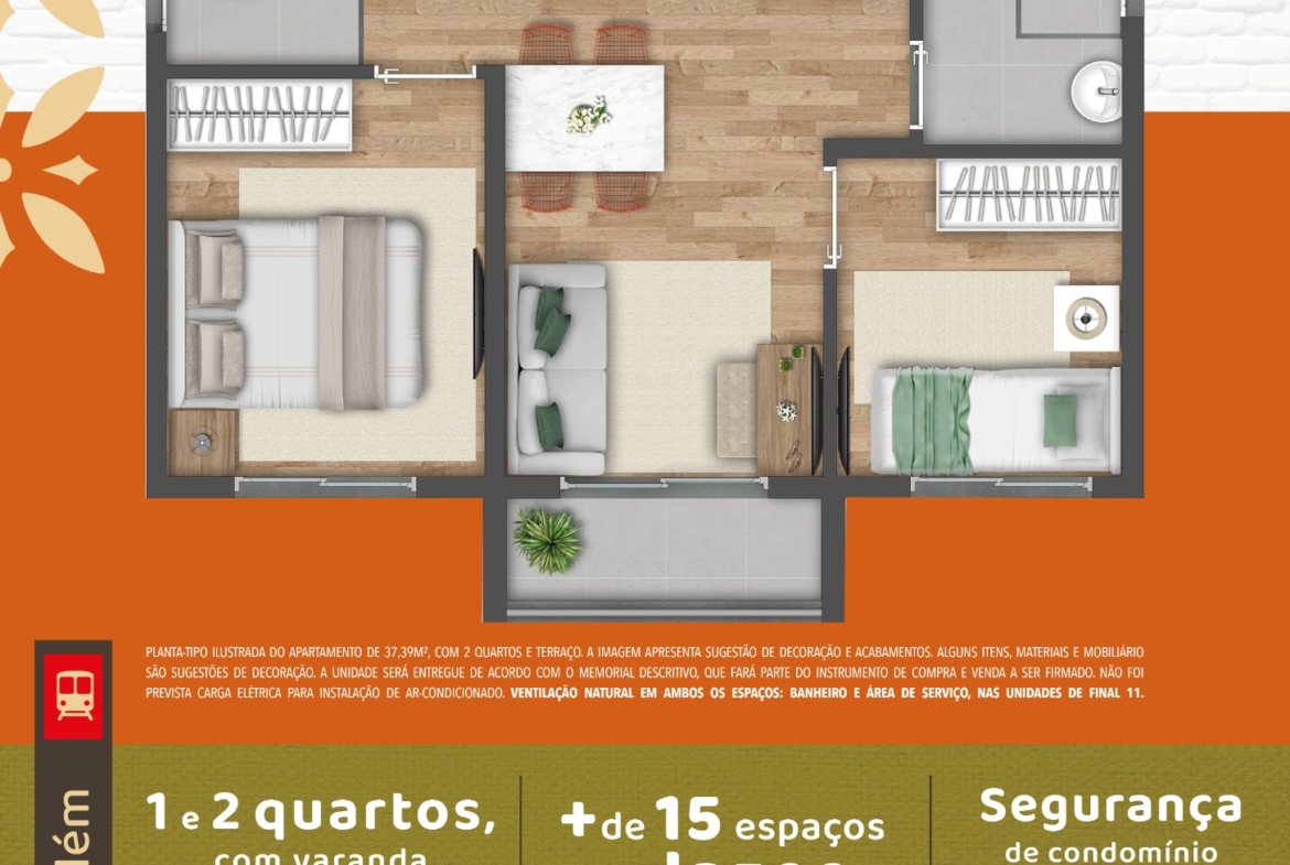 O produto é indicado a moradores que buscam moradia com bom custo-benefício ou investidores que buscam imóveis compactos com potencial de locação