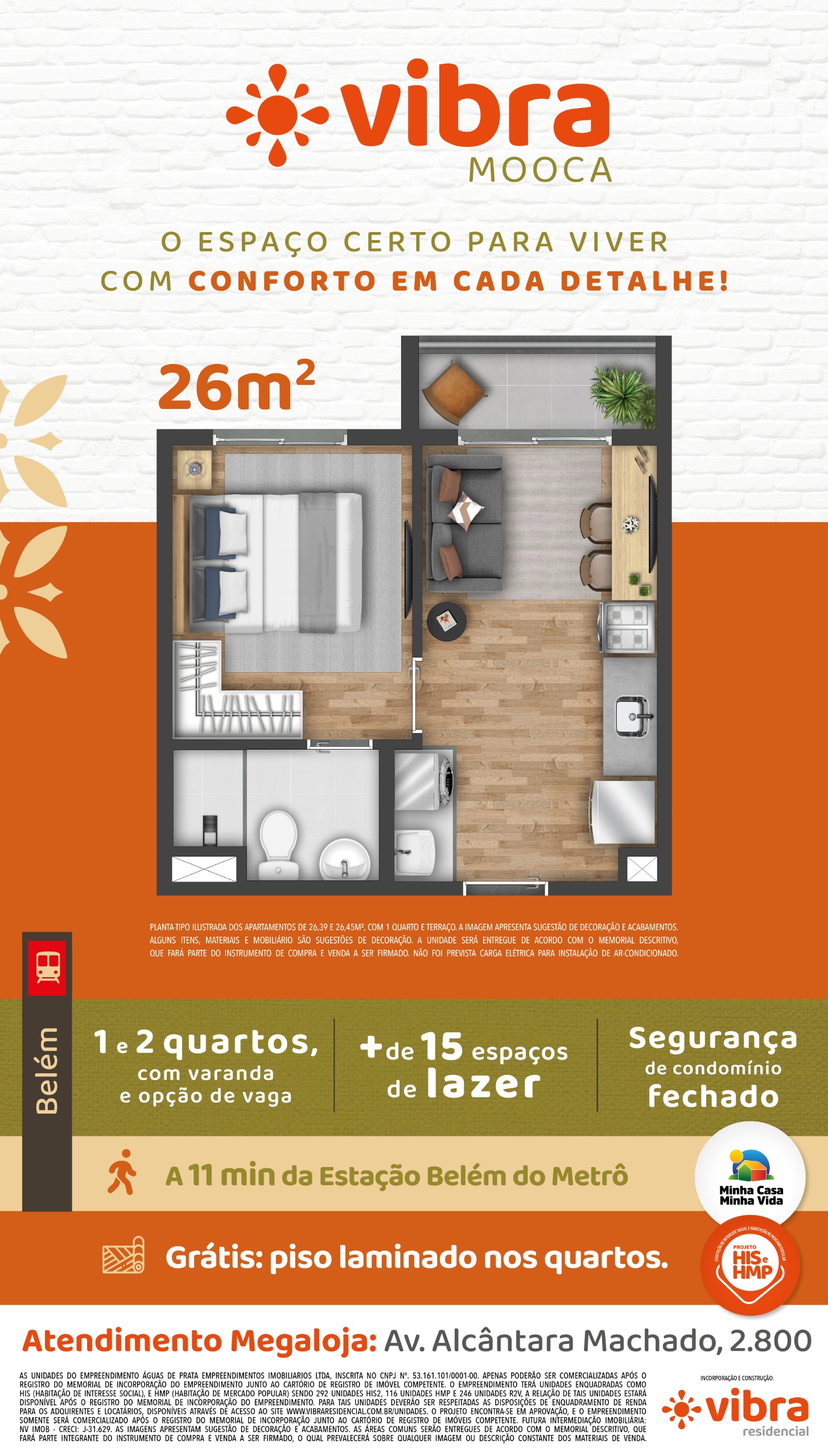 Vibra Mooca foi concebido como um produto imobiliário acessível na Mooca, com foco em otimização de espaços e acesso à infraestrutura urbana. A torre única beneficia privacidade e facilidade de gestão condominial.