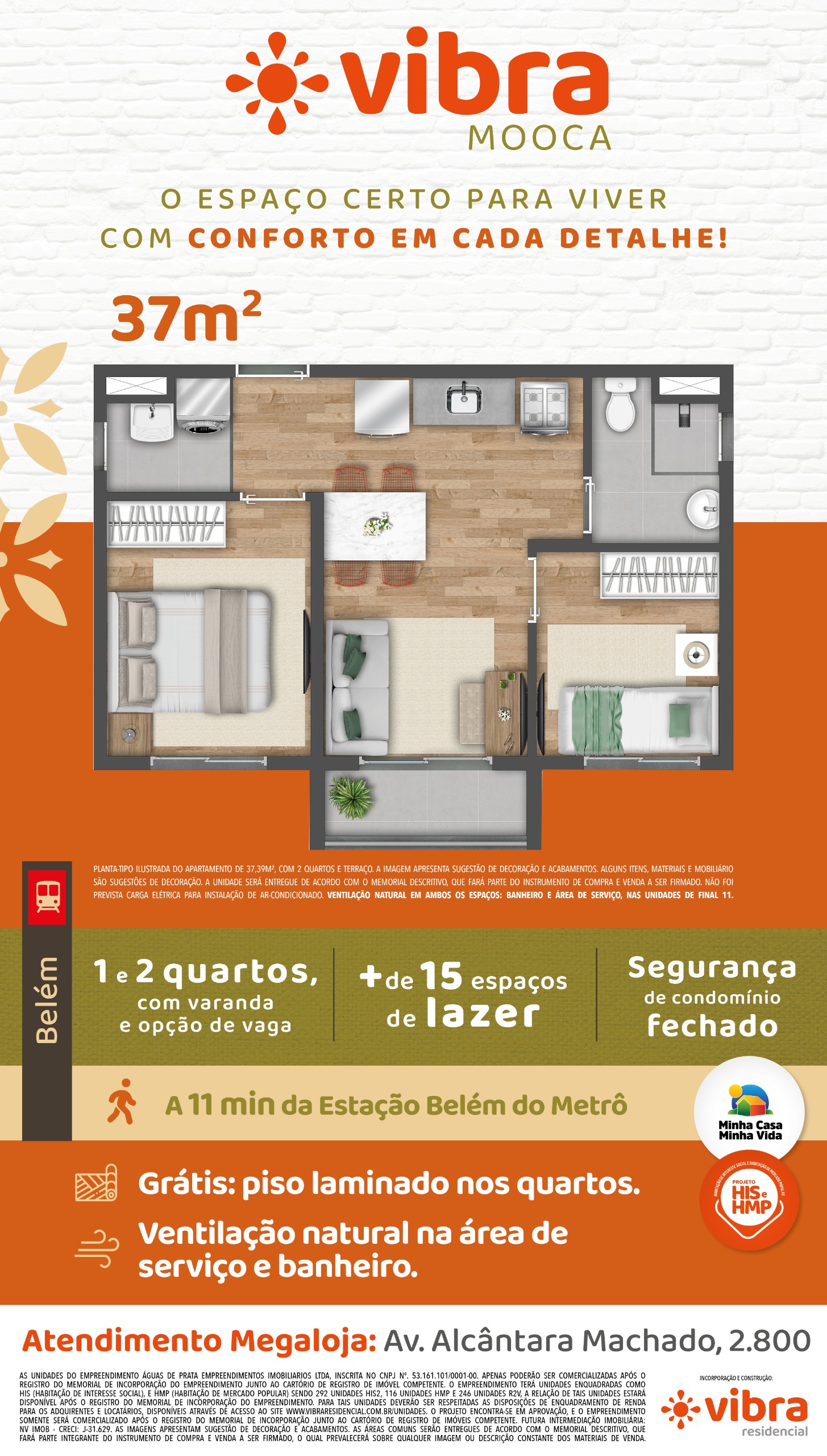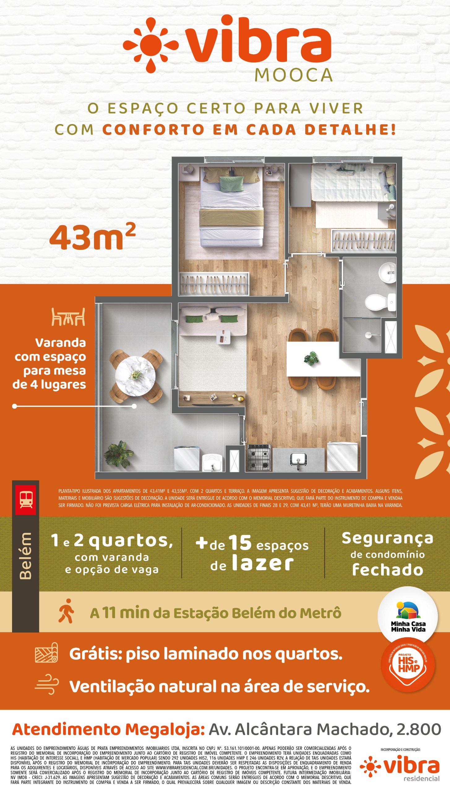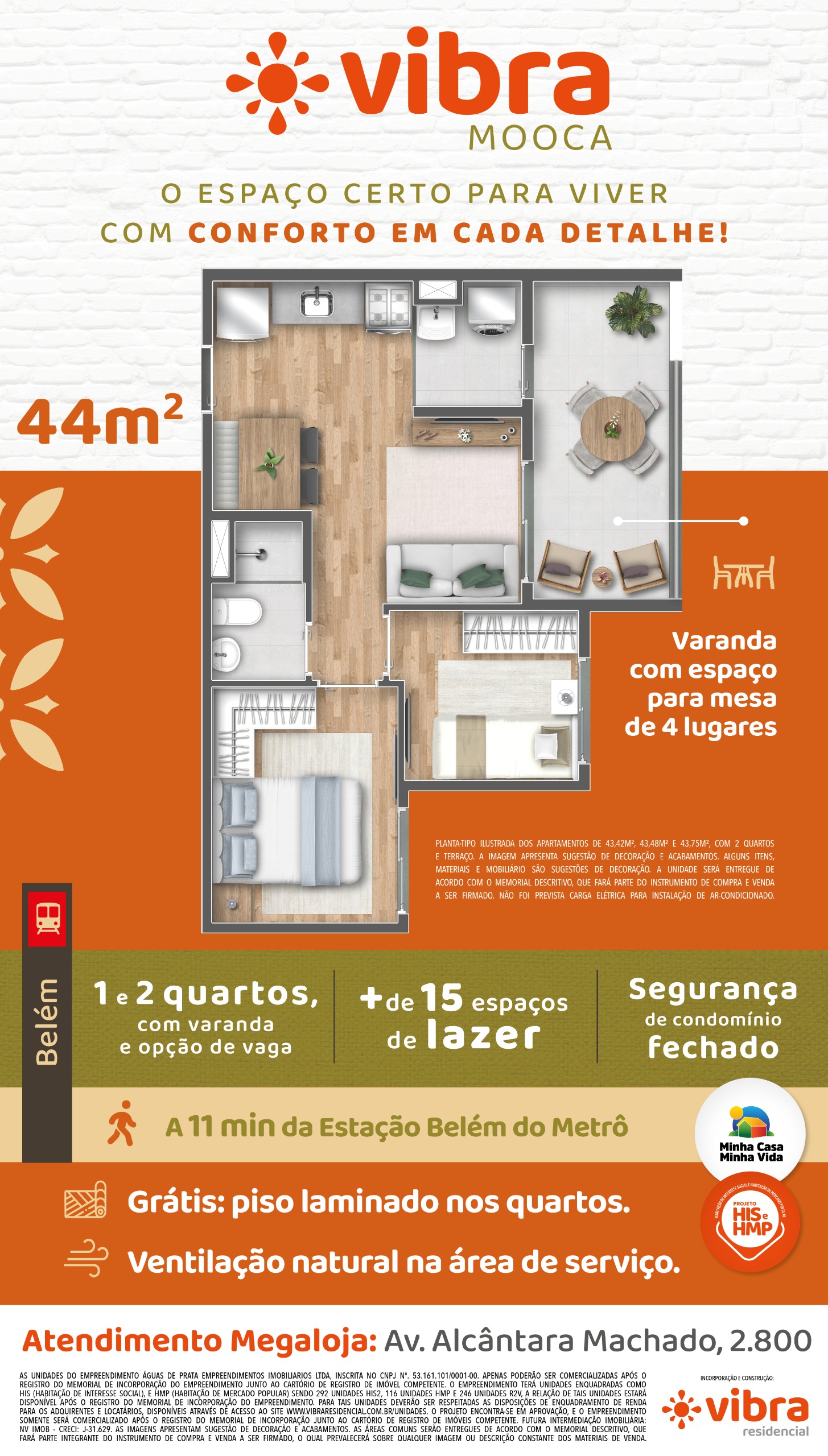 Quais são as metragens dos apartamentos do Vibra Mooca?